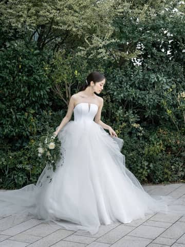 シンプルでありながらも細部まで計算されたデザインが、花嫁の魅力を自然に引き立ててくれます。
